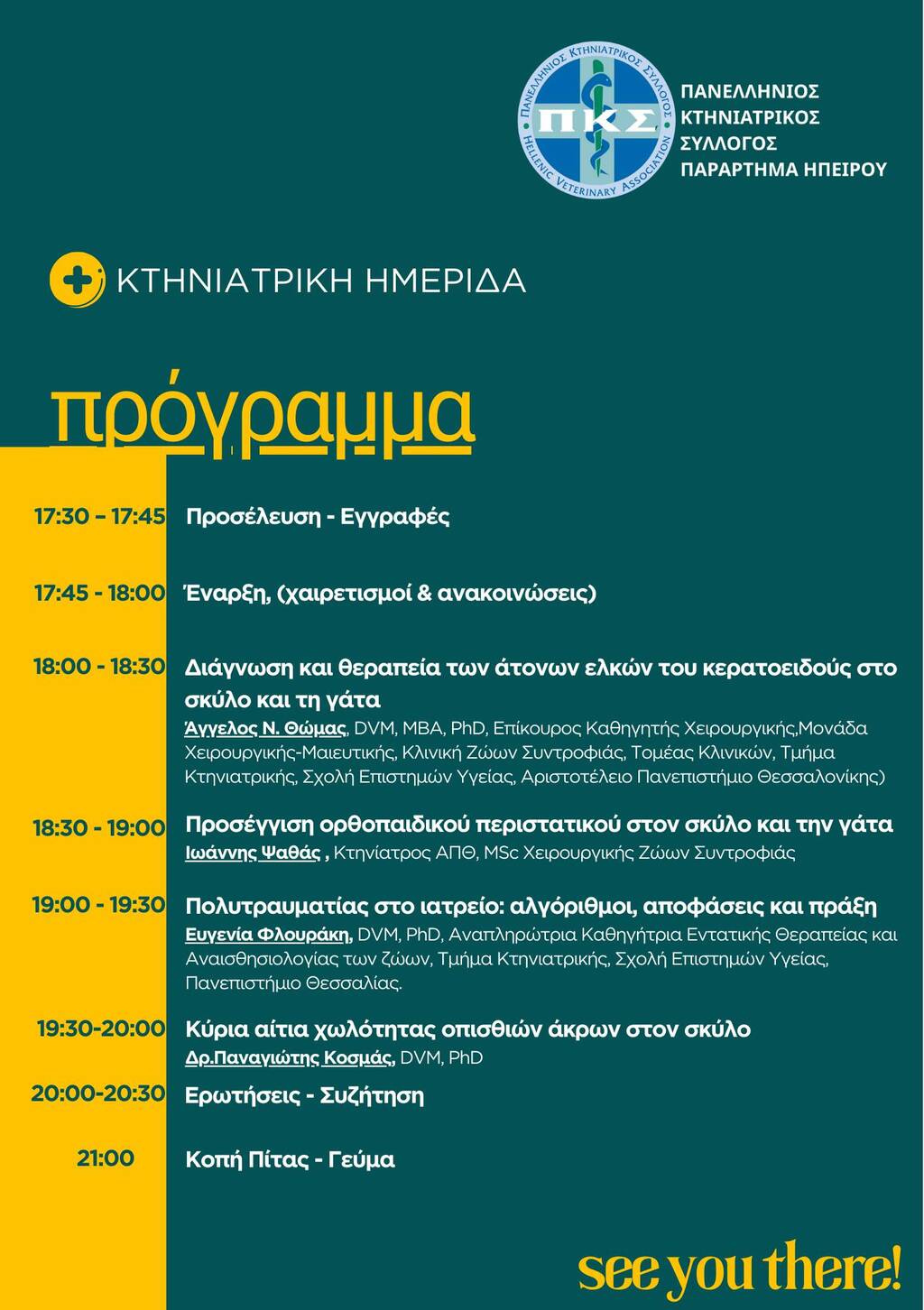 Ημερίδα Παραρτήματος Ηπείρου του Π.Κ.Σ.: «Σύγχρονη Κτηνιατρική Πράξη Ζώων Συντροφιάς-Ορθοπαιδική, Αναισθησιολογία,Οφθαλμολογία»