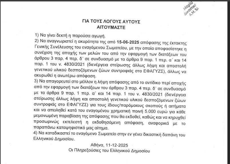 Τονίζουμε με κάθε τρόπο ότι το βασικό μας χρέος είναι να προασπίσουμε την υγεία και ευζωία των ζώων και να διαφυλάξουμε τη Δημόσια Υγεία. Αυτό δεν αλλάζει εξαιτίας απειλών και δικαστηρίων.