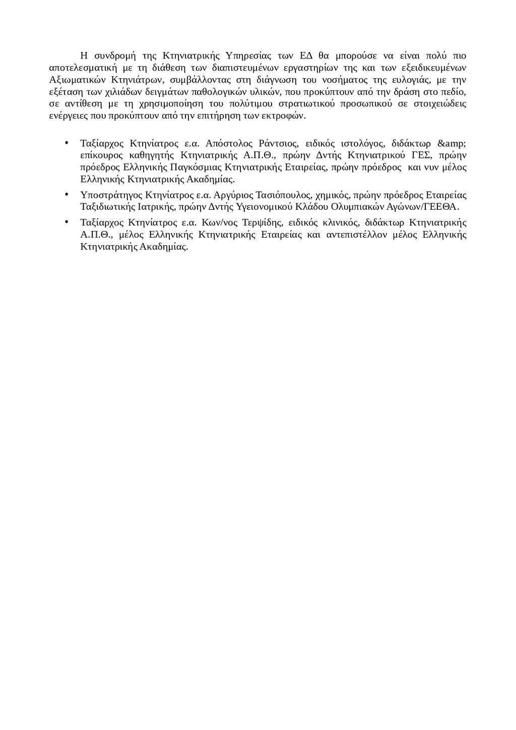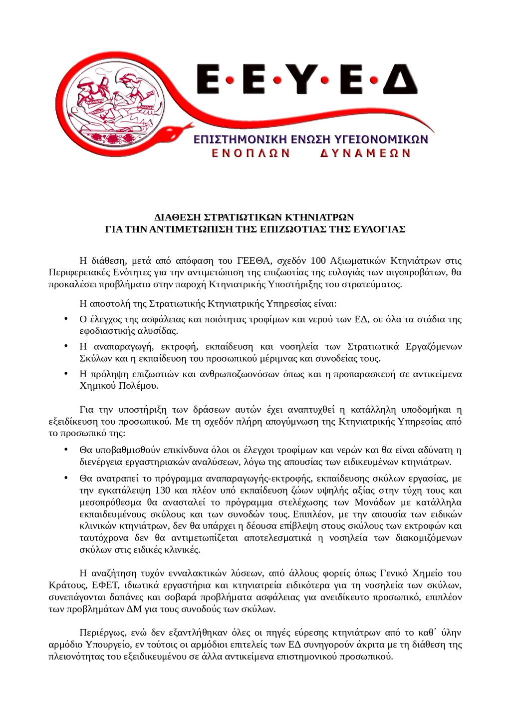 Επιστημονική Ένωση Υγειονομικών Ένοπλων Δυνάμεων: Διάθεση Στρατιωτικών Κτηνιάτρων για την αντιμετώπιση της ευλογιάς