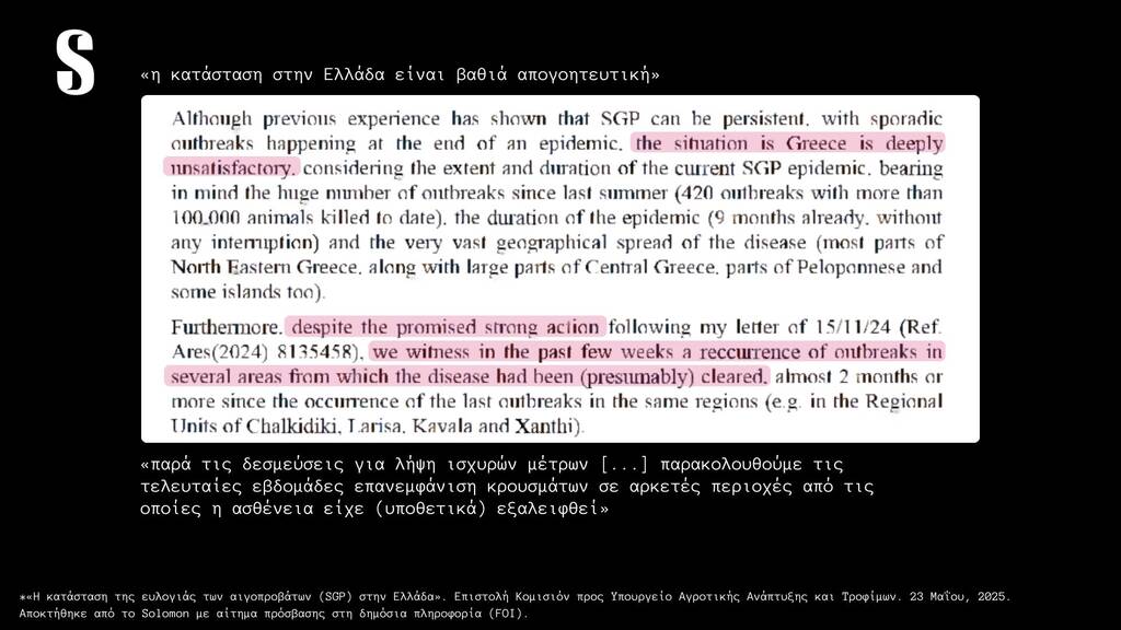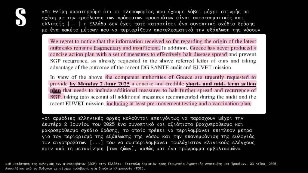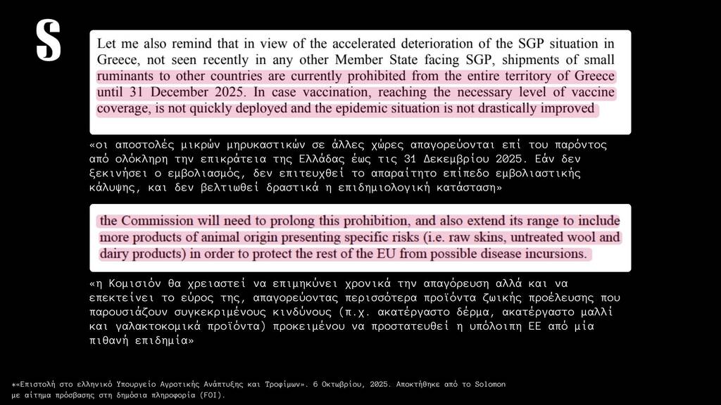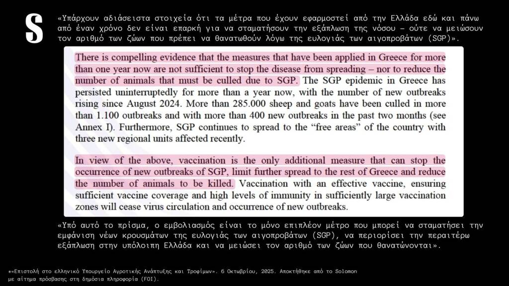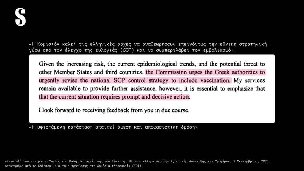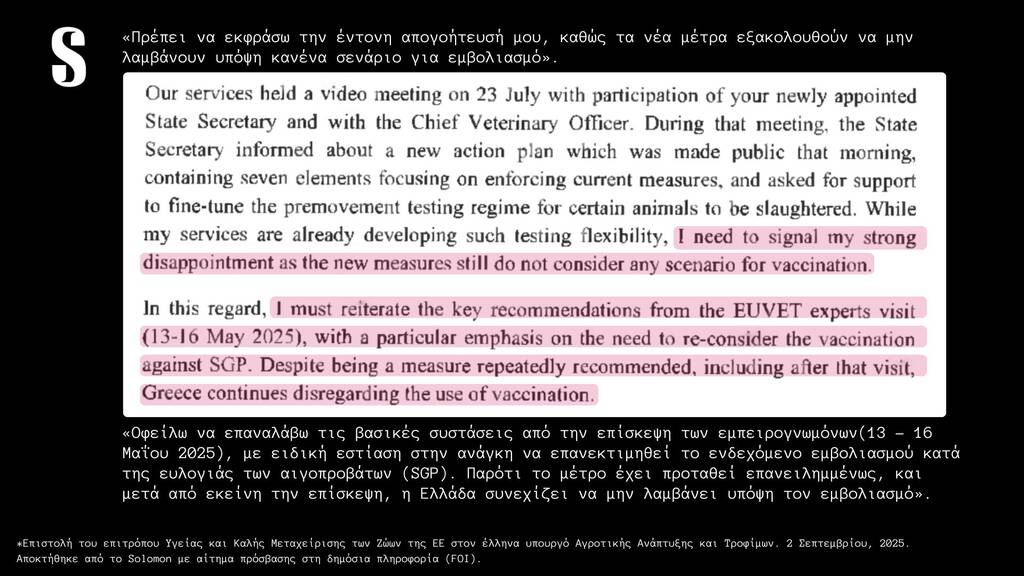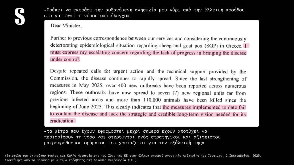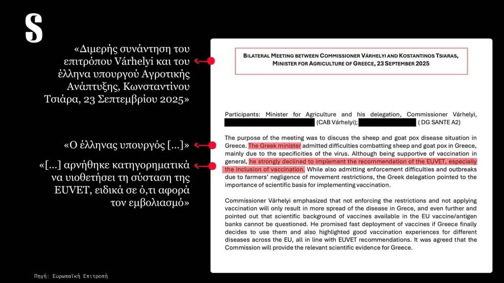 Και αν για την συμφωνία Ε.Ε. – Mercosur η Ελληνική κυβέρνηση κρύβεται πίσω από την ευρωπαϊκή πλειοψηφία (“θα περνούσε έτσι κι αλλιώς η συμφωνία, θα την ψήφιζαν τα άλλα κράτη” μας λένε, κάτι που δεν ισχύει), για την διαχείριση του φλέγοντος ζητήματος της ευλογιάς δεν υπάρχει καμία τέτοια δικαιολογία. Έχουν περάσει αρκετοί μήνες από τότε που ο Ευρωπαίος ο Επίτροπος Υγείας και Ευζωίας των Ζώων της Ευρωπαϊκής Επιτροπής, κ. Όλιβερ Βάρχελι, απέστειλε επιστολή προς τον Υπουργό Αγροτικής Ανάπτυξης και Τροφίμων, με την οποία καθιστά απολύτως σαφές ότι, λόγω της ανεξέλεγκτης επιδημιολογικής κατάστασης στην Ελλάδα, ο εμβολιασμός κατά της ευλογιάς αιγοπροβάτων αποτελεί αναγκαίο και υποχρεωτικό συμπληρωματικό μέτρο βάσει του ευρωπαϊκού δικαίου. «Υπάρχουν αδιάσειστες αποδείξεις ότι τα μέτρα που έχουν εφαρμοστεί στην Ελλάδα εδώ και πάνω από έναν χρόνο δεν επαρκούν για να σταματήσουν την εξάπλωση της νόσου-ούτε για να μειώσουν τον αριθμό των ζώων που πρέπει να θανατωθούν» αναφέρει ο Επιτροπος στην επιστολή του. Στην απάντησή του, το ΥΠΑΑΤ υπεραμύνεται των ακατανόητων (;) επιλογών του επικαλούμενο πρόσφατη δημόσια τοποθέτηση του Ευρωπαίου Επιτρόπου Γεωργίας, Κριστόφ Χάνσεν, ο οποίος χαρακτήρισε τον εμβολιασμό «ύστατο μέτρο» και όχι βασική στρατηγική διαχείρισης της νόσου. Κι εδώ γεννάται αβίαστα το ερώτημα: πότε ακριβώς θεωρείται ότι μια χώρα φτάνει στις «ύστατες επιλογές» της, αν όχι μετά τη θανάτωση σχεδόν μισού εκατομμυρίου ζώων;
