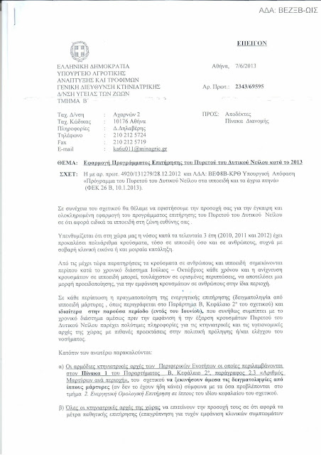 Εφαρμογή προγράμματος επιτήρησης του Πυρετού του Δυτικού Νείλου