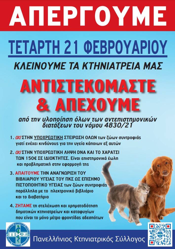 ΑΠΕΡΓΙΑ ΚΤΗΝΙΑΤΡΩΝ, 21 ΦΕΒΡΟΥΑΡΙΟΥ 2024. ΚΙΝΗΤΟΠΟΙΗΣΗ ΣΤΟ ΥΠΟΥΡΓΕΙΟ ΕΣΩΤΕΡΙΚΩΝ, Σταδίου 27, στις 12.00