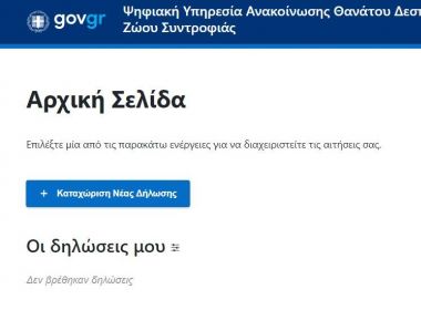 Άνοιξε στο gov.gr η εφαρμογή "Ανακοίνωση θανάτου ζώου συντροφιάς" από τον ιδιοκτήτη προκειμένου να μπορούν μόνοι τους να δηλώνουν το θάνατο του ζώου τους