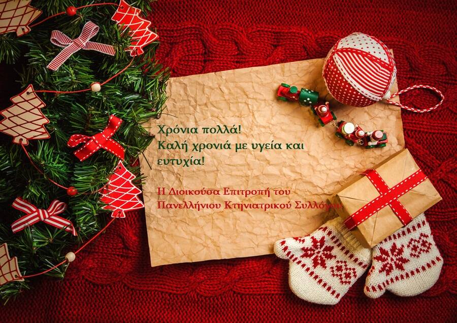 Η γραμματεία του Πανελλήνιου Κτηνιατρικού Συλλόγου θα παραμείνει κλειστή 25 και 26 Δεκεμβρίου, 1 και 2 Ιανουαρίου. Στις 24 και 31 Δεκεμβρίου τα γραφεία θα είναι ανοιχτά από τις 8.00 έως τις 12.00.