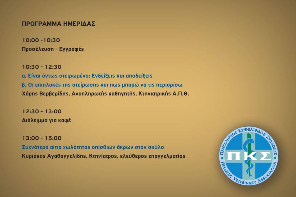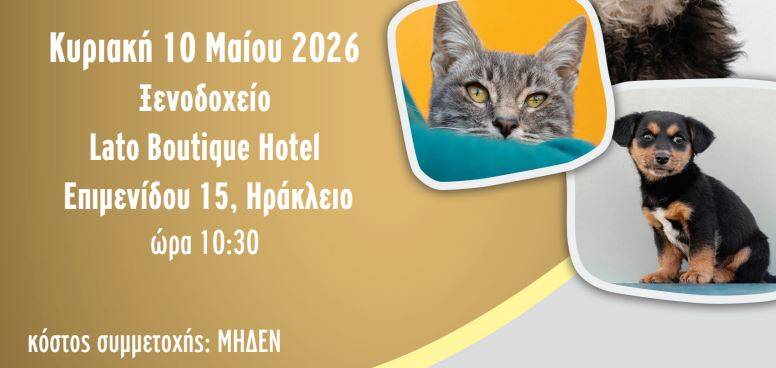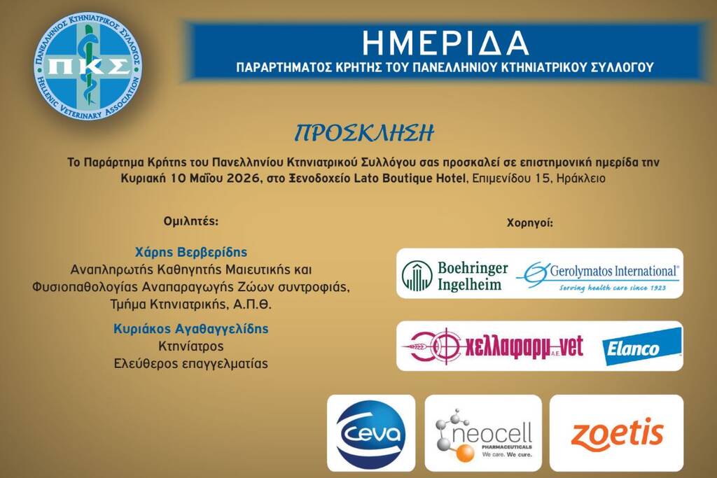 Κυριακή, 10/05/26: Ημερίδα Παραρτήματος Κρήτης Πανελλήνιου Κτηνιατρικού Συλλόγου